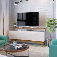 Estructura en MDP 15mm - Base en MDP 25mm - Frentes de cajones en MDF 15mm - Tampo en MDF 25mm (45º) - Corredaderas telescópicas - Patas de madera maciza.