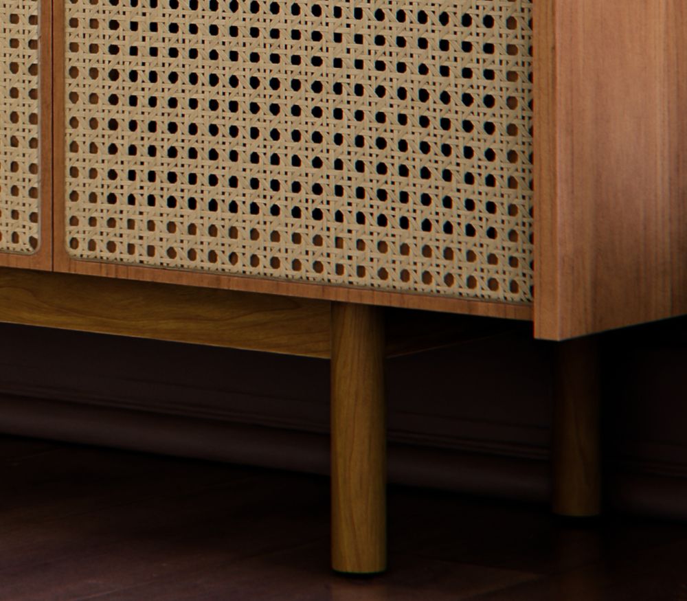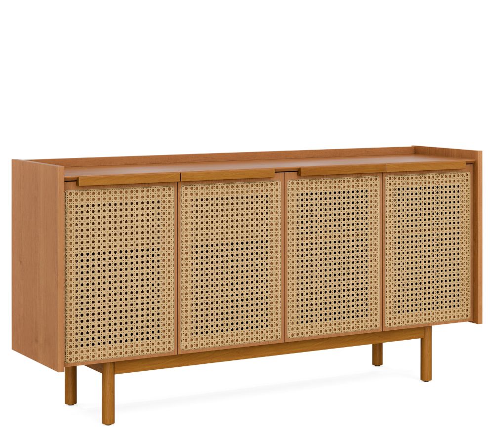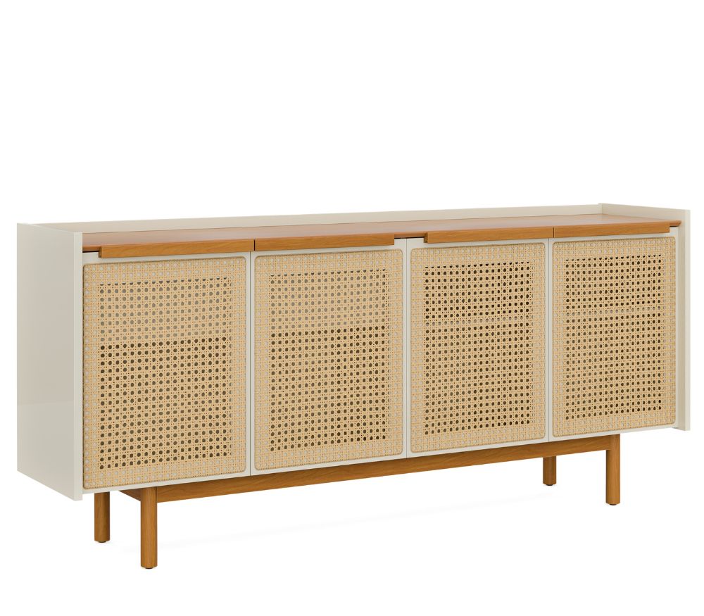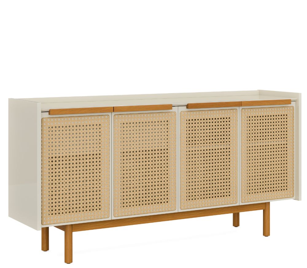 - Base, pés e puxadores em madeira maciça