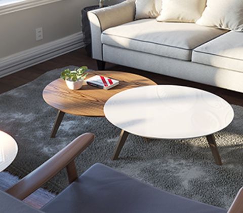 - Mesa redonda revestida com material sintético de alta qualidade;
